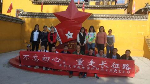 4月13日下午,太阳集团电子游戏官方网站研究生第六党支部集体前往寻甸县柯渡镇丹桂村,开展“不忘初心,重走长征路”主题活动,通过参观丹桂村中央红军总部驻地旧址,重温革命历史,缅怀革命先烈,接受革命传统教育,实地感受并学习红军长征精神。本次活动由支部书记唐安民主持,我支部16名党员及入党积极分子参与。